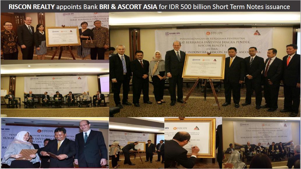 “Kami mengharapkan kerjasama dengan ASCORT Asia Group dan dukungan Bank BRI akan membawa Riscon Realty dalam mendukung percepatan pembangunan Rumah Sederhana Sehat sebagai bagian dari proyek utama pemerintah di bidang kesejahteraan papan,” ujar CEO & Presiden Direktur Riscon Realty, Ari Tri Priyono.
